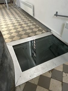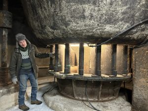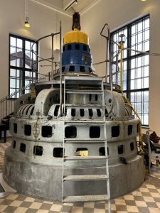 Ainutlaatuinen tilaisuus päästä kammioon, joka voimalan toimiessa oli aina vettä täynnä. Kangaskoskella arvokas osa on ensimmäinen Suomessa käyttöön otettu Kaplan-mallinen turbiini.